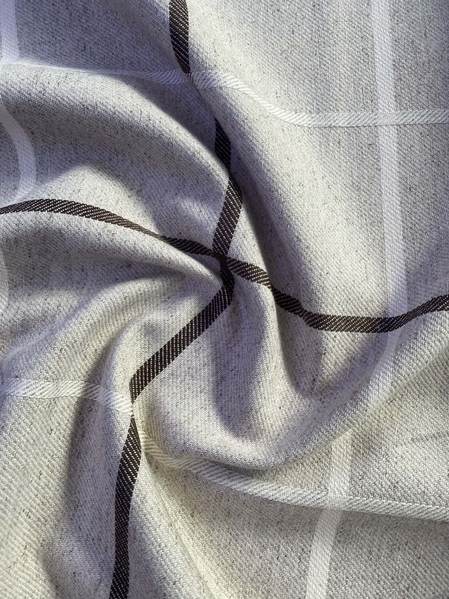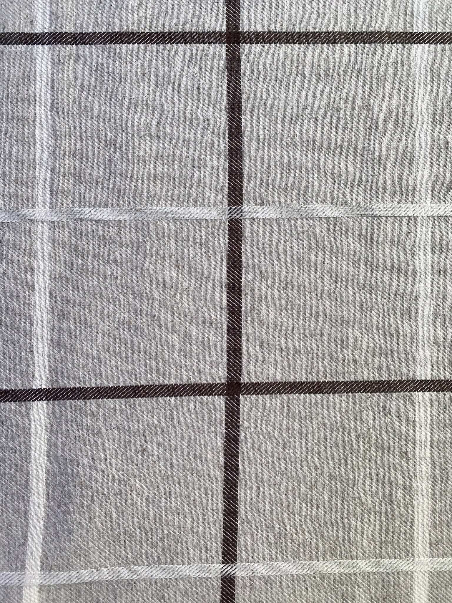 Bring a touch of timeless country charm to your next project with this beautiful checked weaver. Featuring a warm oatmeal base with crisp white and deep chocolate brown windowpane checks, this fabric offers a sophisticated, natural aesthetic that never goes out of style.