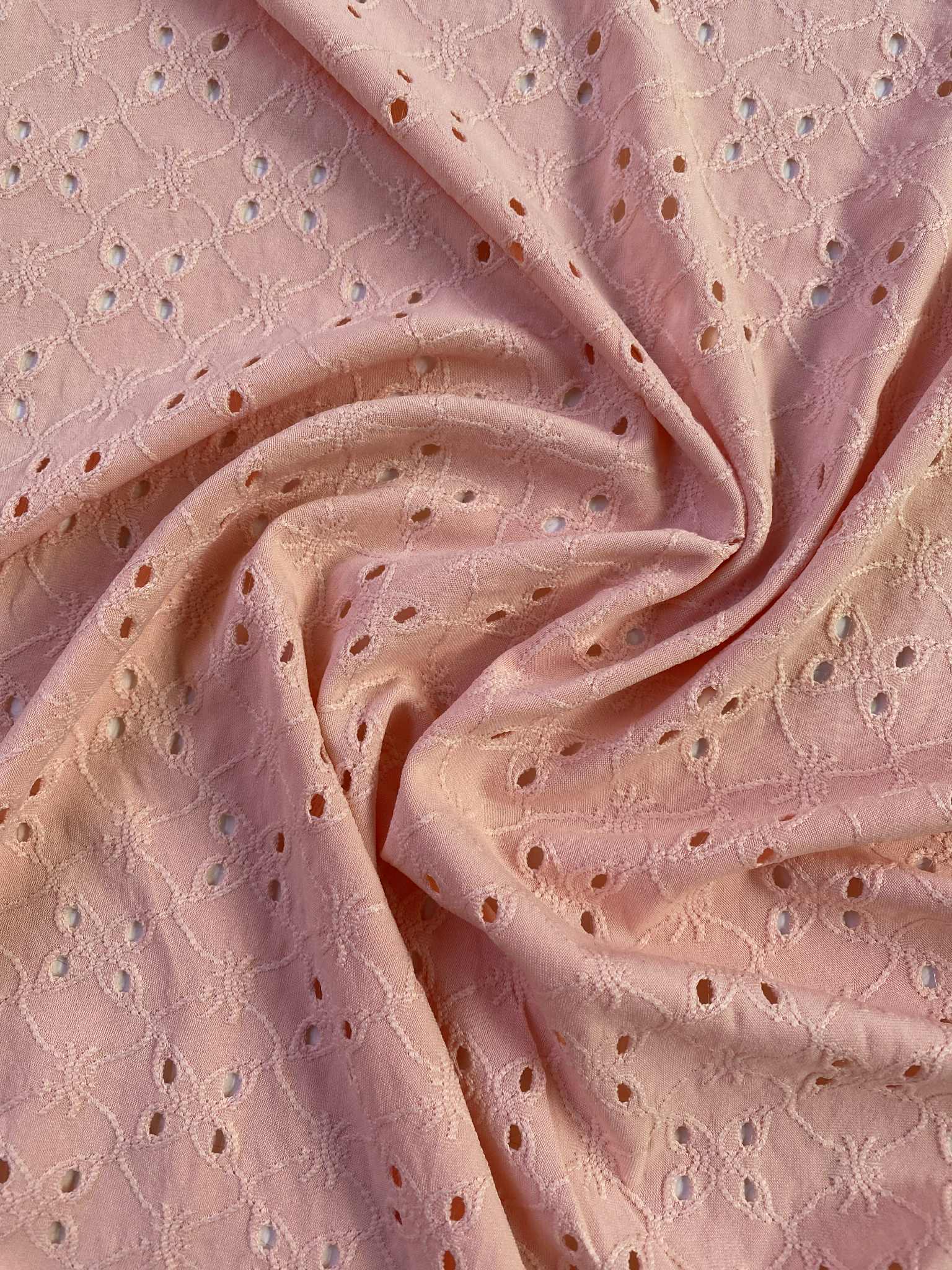 Poly Lycra - Broderie Anglaise - Peach - 62"Wide - Sold By The Metre
