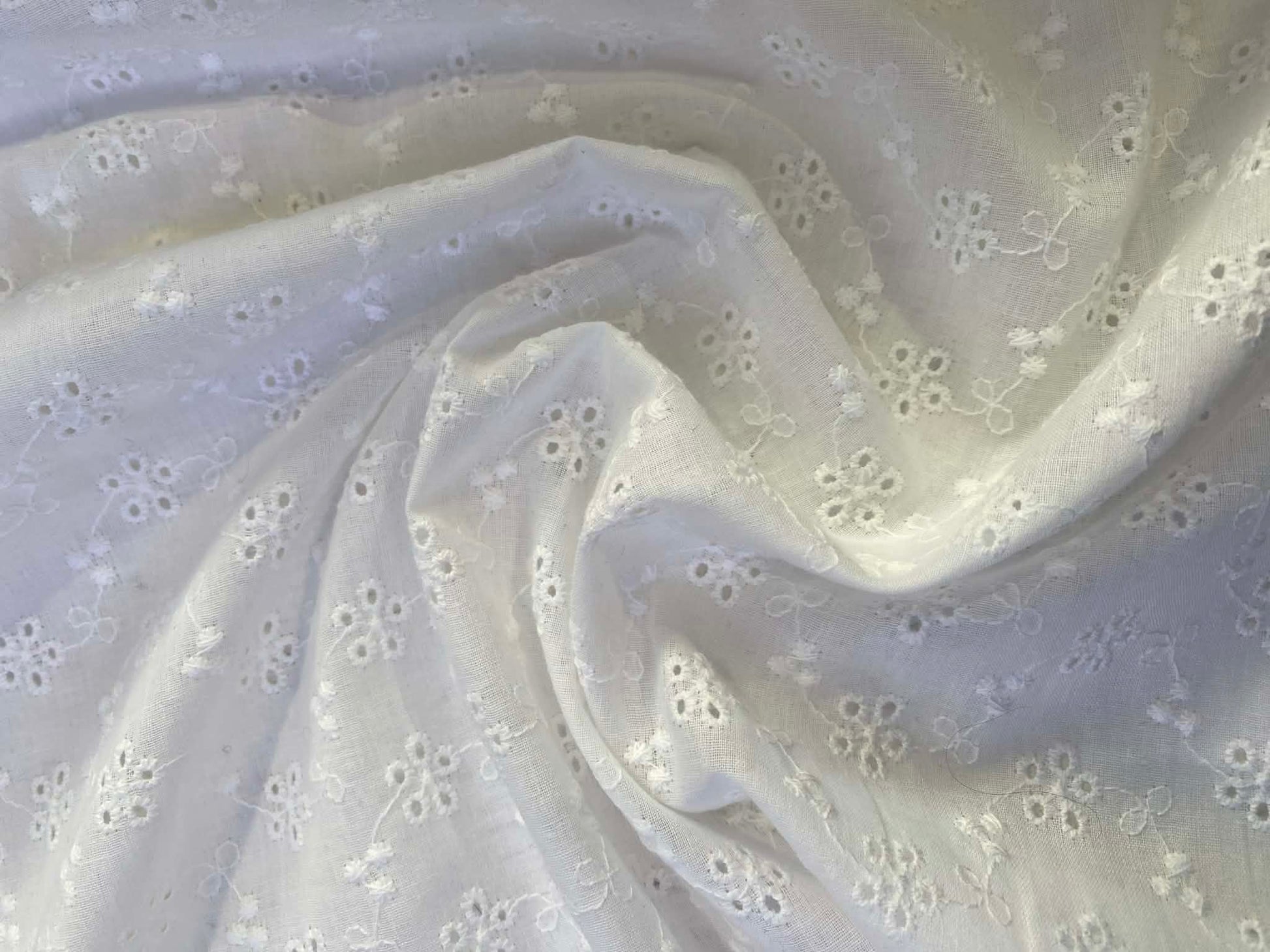 100% Cotton Broderie Anglaise - White - 58"Wide - Sold By The Metre