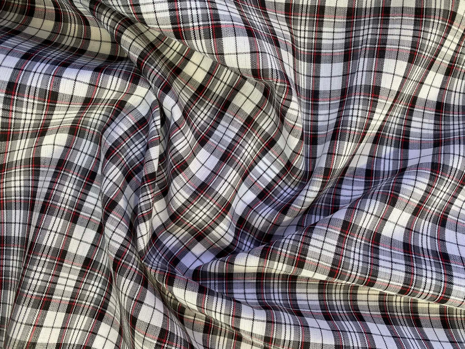 100% Cotton Tartan - Black/White/Red - 59"Wide - Sold By The Metre