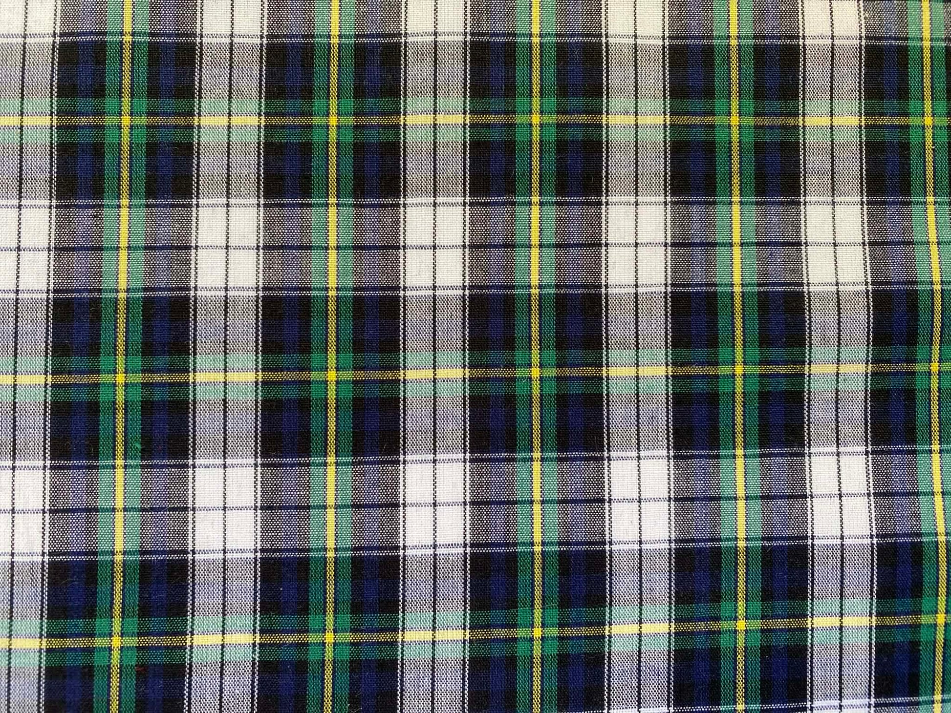 100% Cotton Tartan - Navy/Green/Yellow/White - 59"Wide - Sold By The Metre