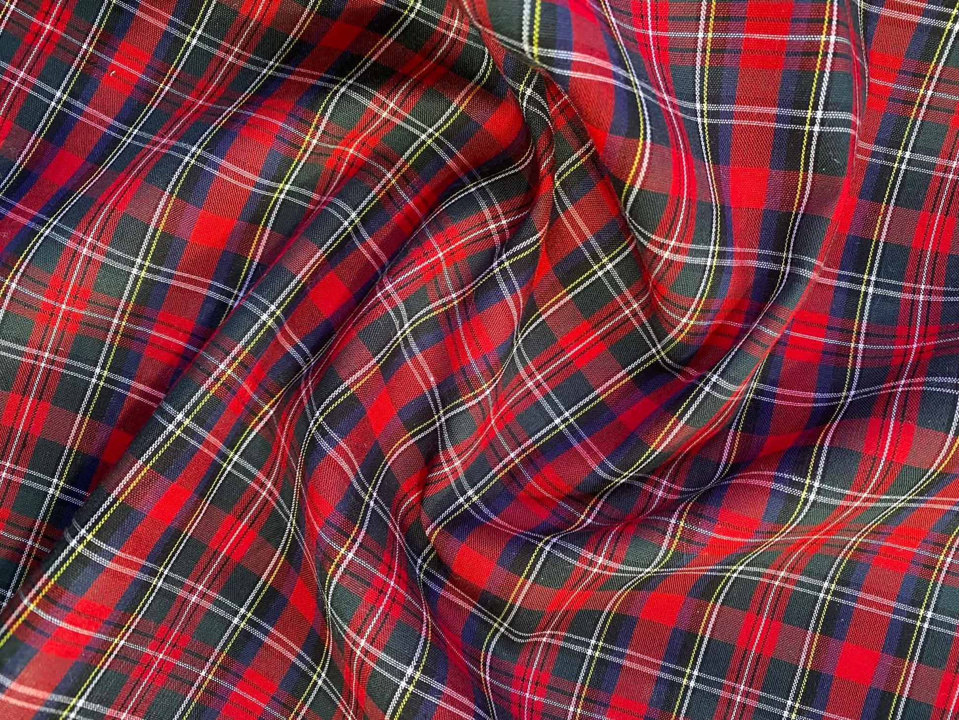 100% Cotton Tartan - Red/Green/Blue/Yellow/White - 59"Wide - Sold By The Metre