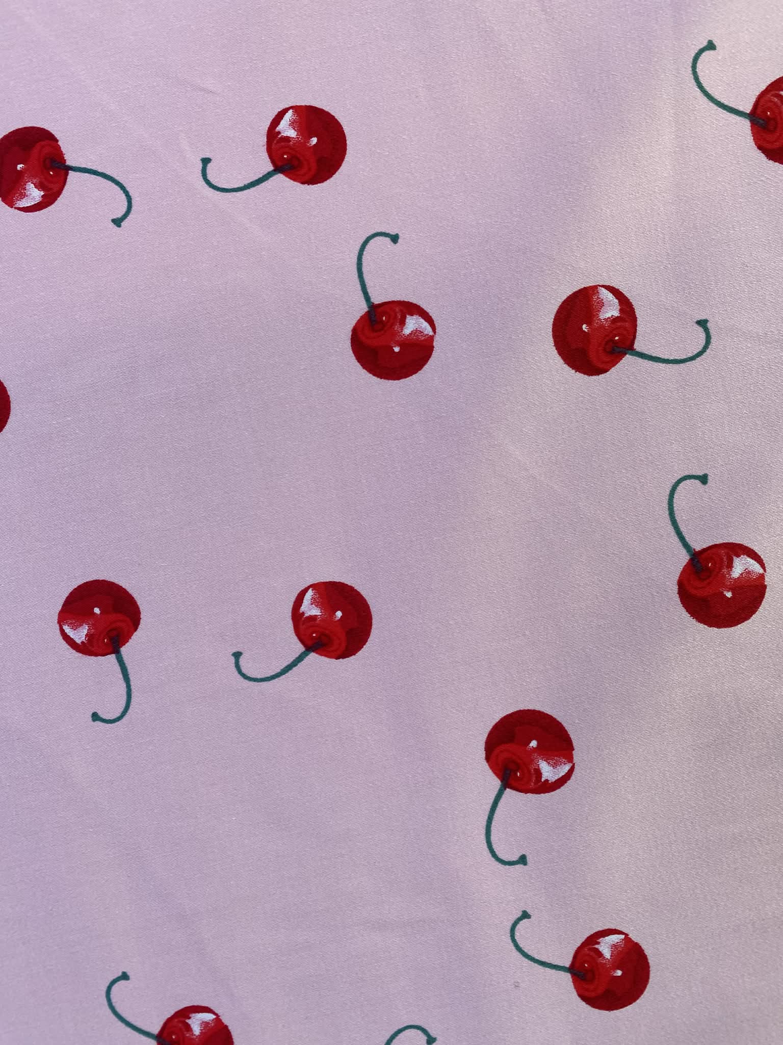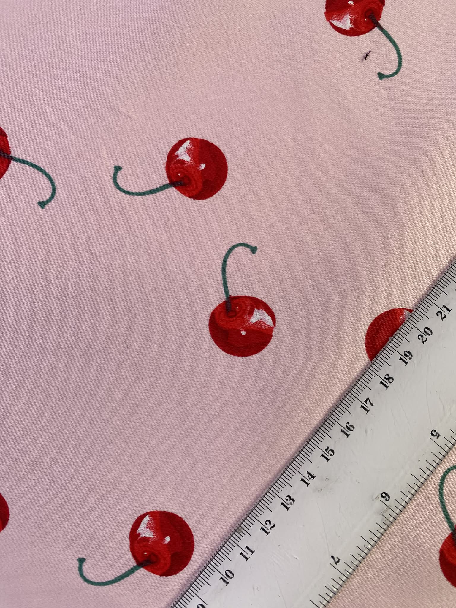 Cotton Spandex - Cherries - Pink/Red/Green - 58"Wide - Sold By The Metre