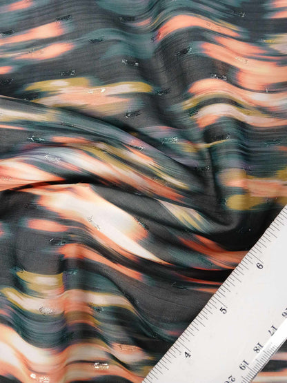 Printed Chiffon Lurex - Black/Orange/Yellow/Green - 60" Wide - Sold By the Metre