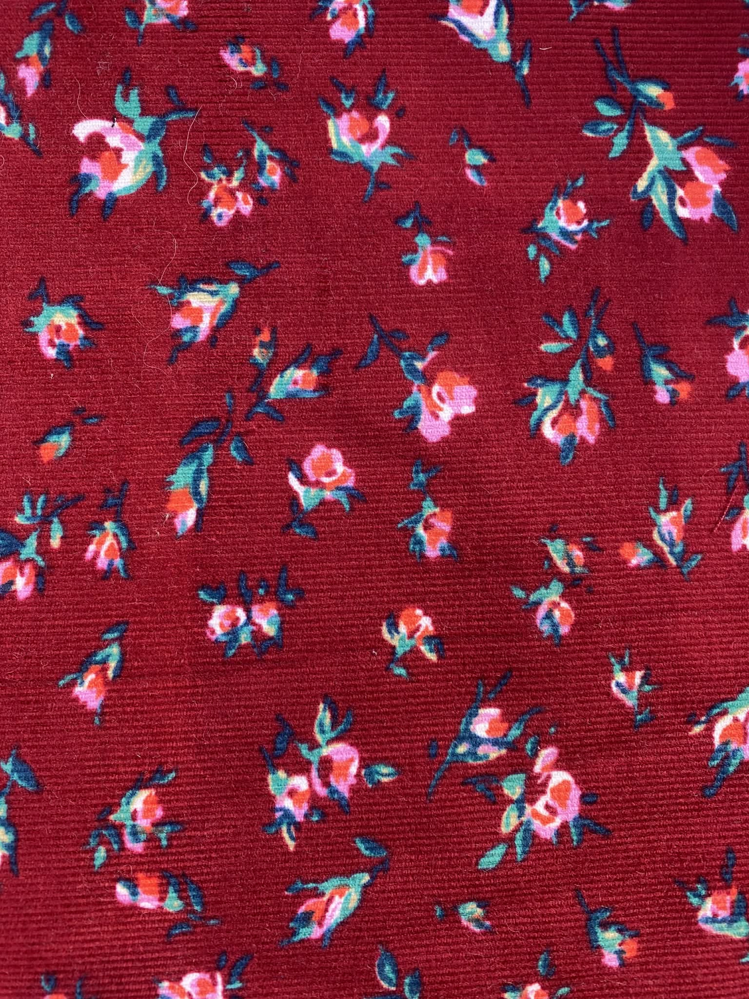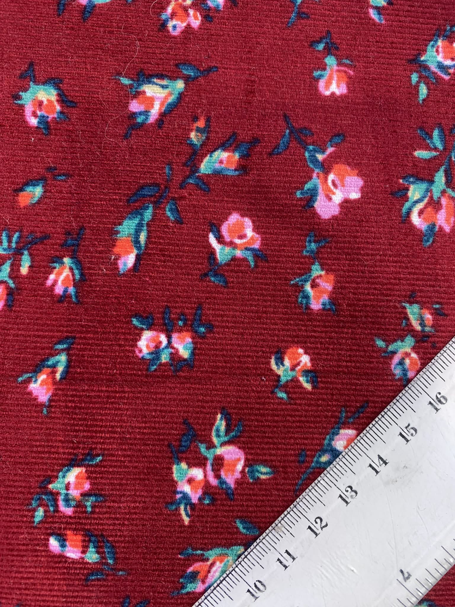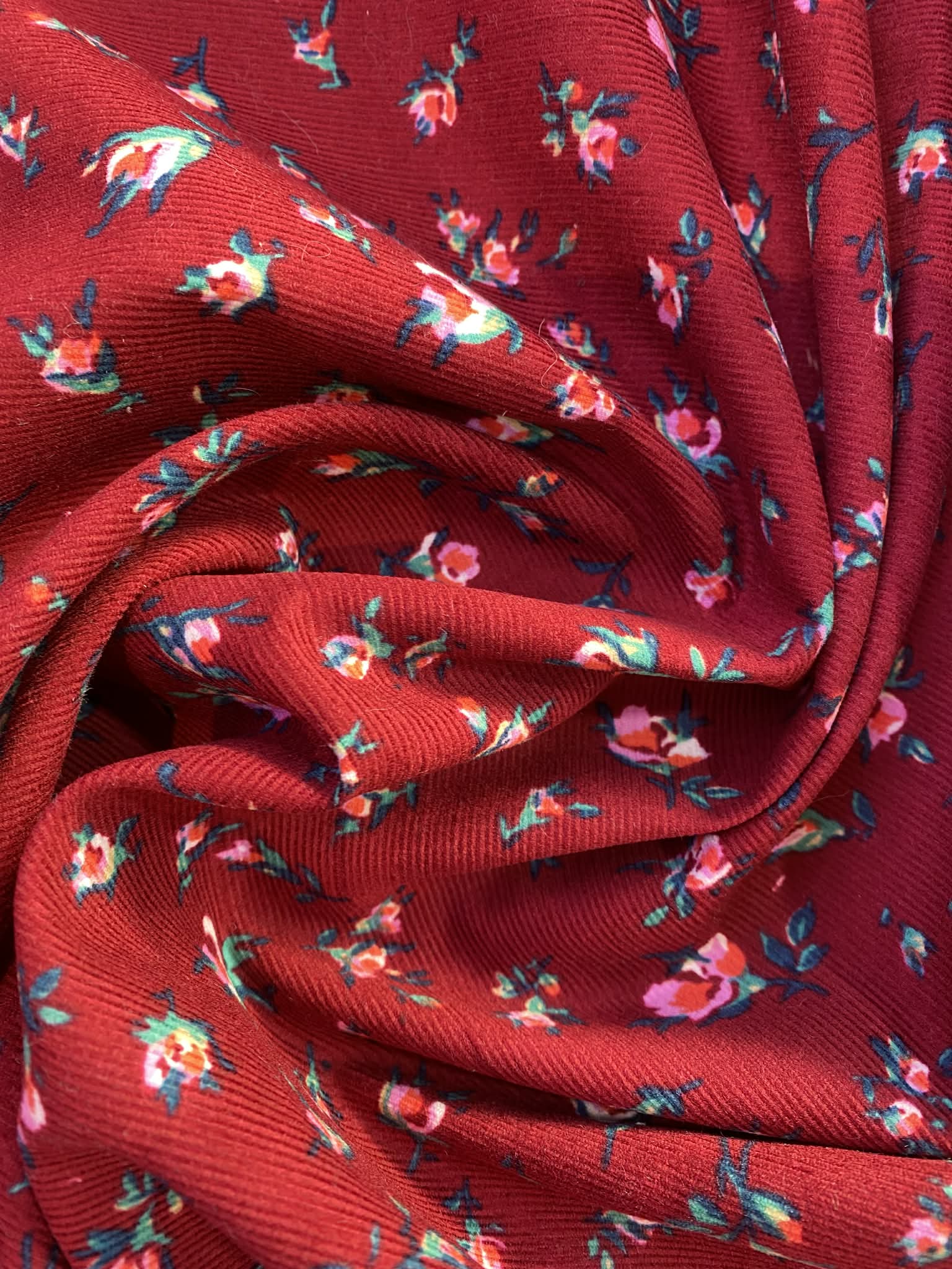 Printed Needlecord 100% Cotton - Wine/Pink/Green - 44"Wide - Sold By The Metre